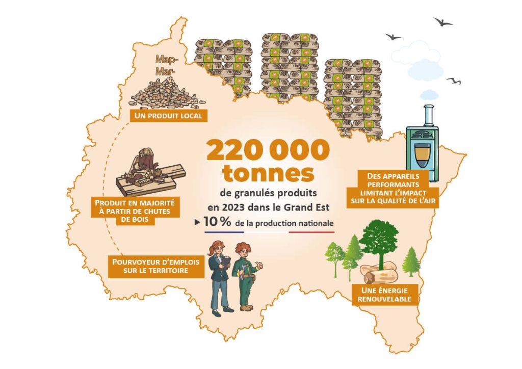 En 2023, 220 000 tonnes de granulés ont été produites, soit 10 % de la production nationale.