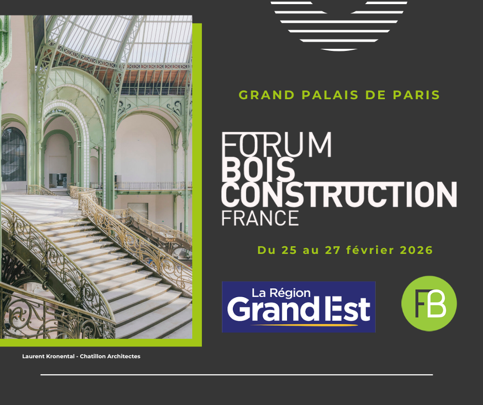 Fibois Grand Est sera présente à la 15e édition du Forum Bois Construction 2026, qui se tiendra du 25 au 27 février 2026 au Grand Palais à Paris, événement de référence dédié à la construction bois et aux matériaux biosourcés.