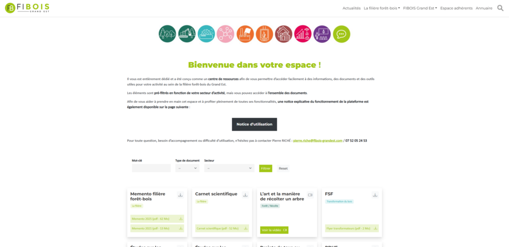 Simple, pratique et évolutif, cet espace a été conçu pour vous faire gagner du temps, renforcer votre expertise et vous permettre de rester connecté aux enjeux et aux dynamiques de la filière forêt-bois du Grand Est.